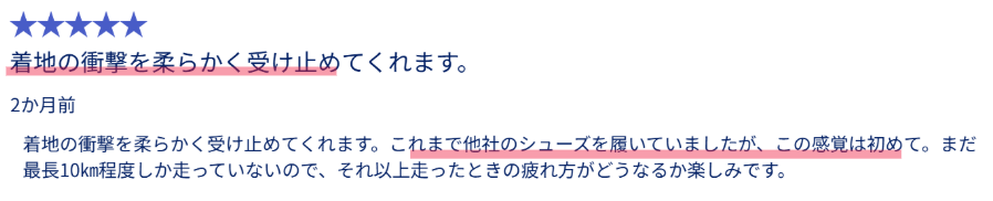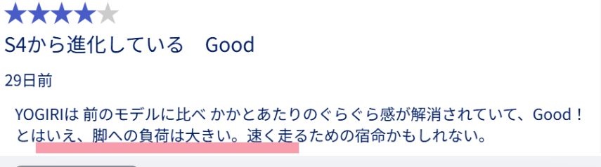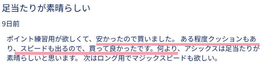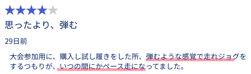 - 柔らか過ぎないクッションで走力を鍛えるのに向いている。