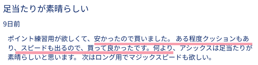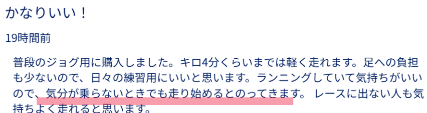サブ4狙いの方。ノバブラストよりも安定感と軽さを求める方。何と言ってもコスパ最強!