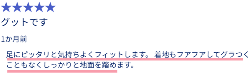 - 接地が安定し、フォームが乱れにくいのでケガのリスクを抑えることができる。