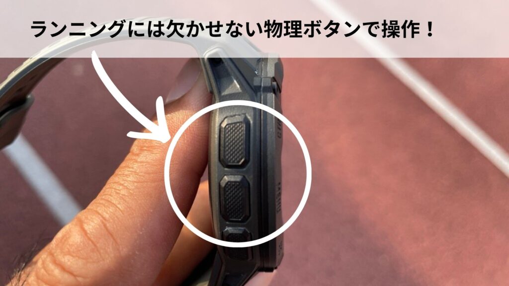 ランニング中のタッチディスプレイでの操作は難しいので物理ボタンで操作できるのは嬉しい。