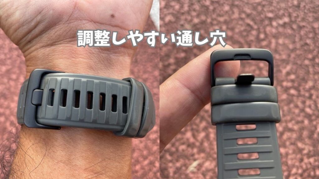 ベルトも柔らかい素材なので、手首にしっかりフィットしやすく、汗をかいても不快にならないのが汗っかきの私には嬉しいポイントでした。