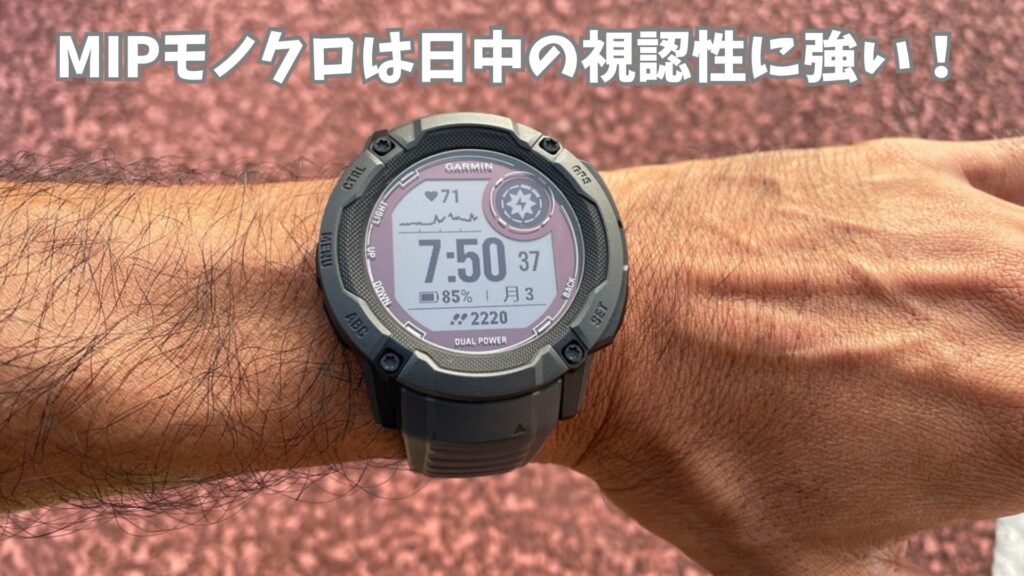 Forerunner265もInstinctも常時点灯表示できますが、Forerunner265は初期設定が必要でバッテリーの消耗も早いのがデメリット。
