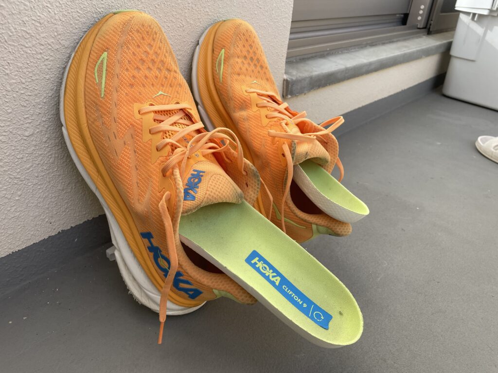 履いている時はそんなに気になりませんでしたが、ホカを履いてからこの軽量性とクッションの柔らかさは別物だと感じることができました。