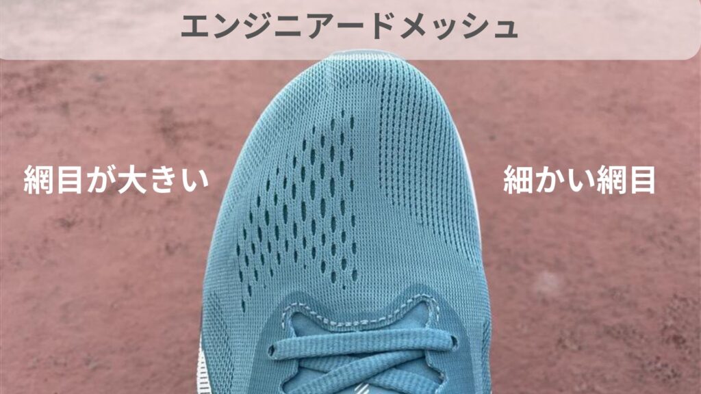 通気性に優れたエンジニアードメッシュは、足当たりが良く、足に馴染みやすいのが特徴です。