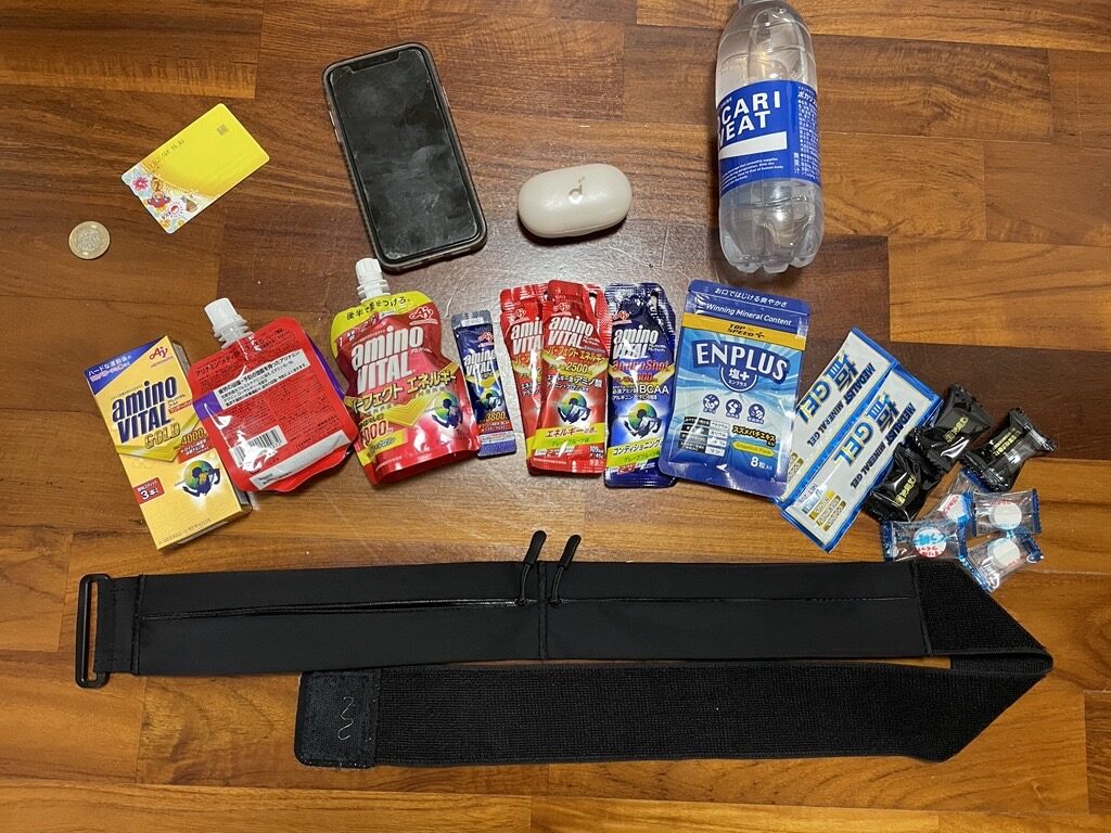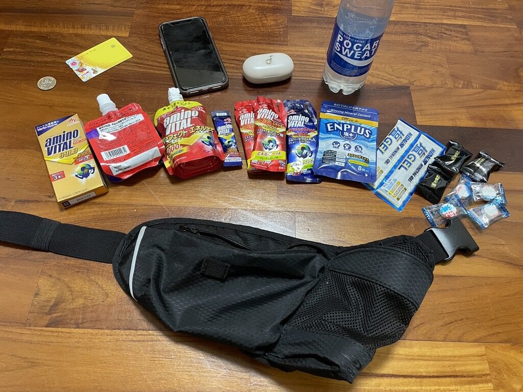 ランニングポーチの中身は必要なアイテムでいっぱい。